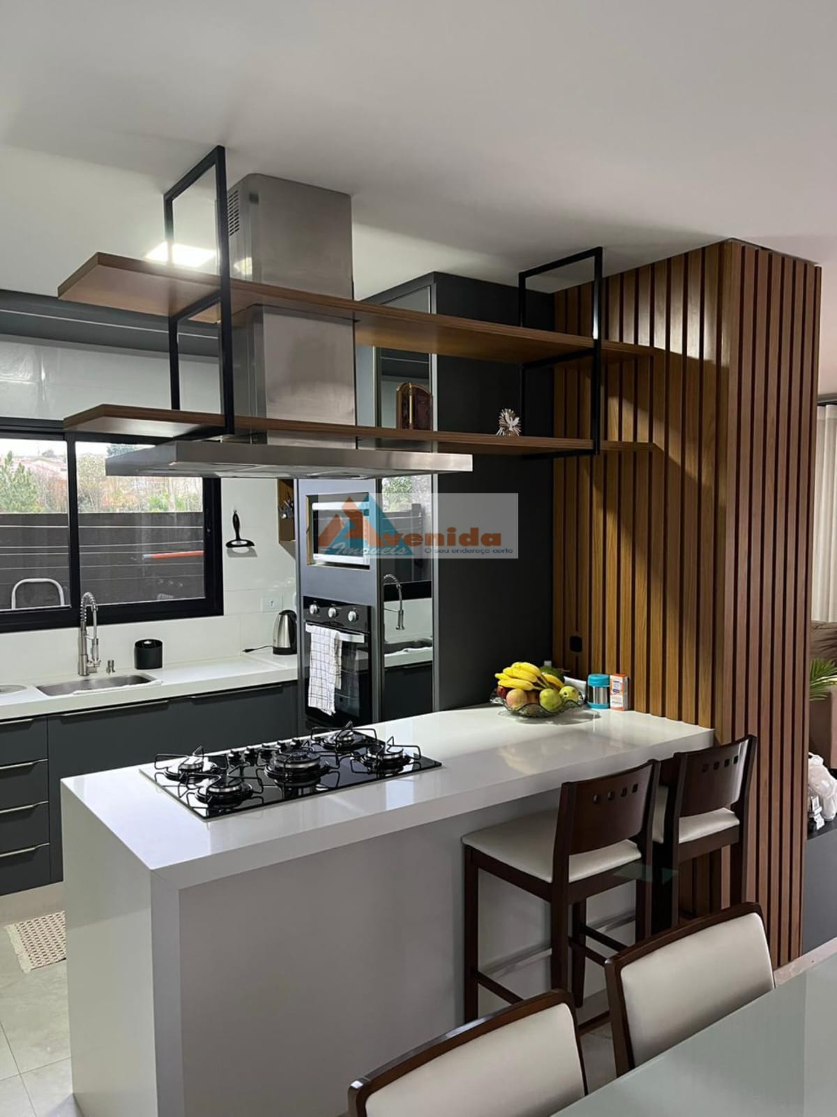 -Pavimento térreo:sala para dois ambientes, cozinha com armários, lavabo, lavanderia, amplo espaço gourmet e sacada com vista panorâmica.